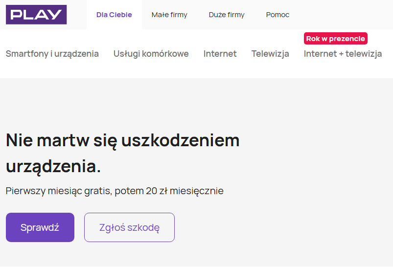 „Ochrona smartfona” (dla abonentów Play) + pakiety sprzętu w innych kanałach |